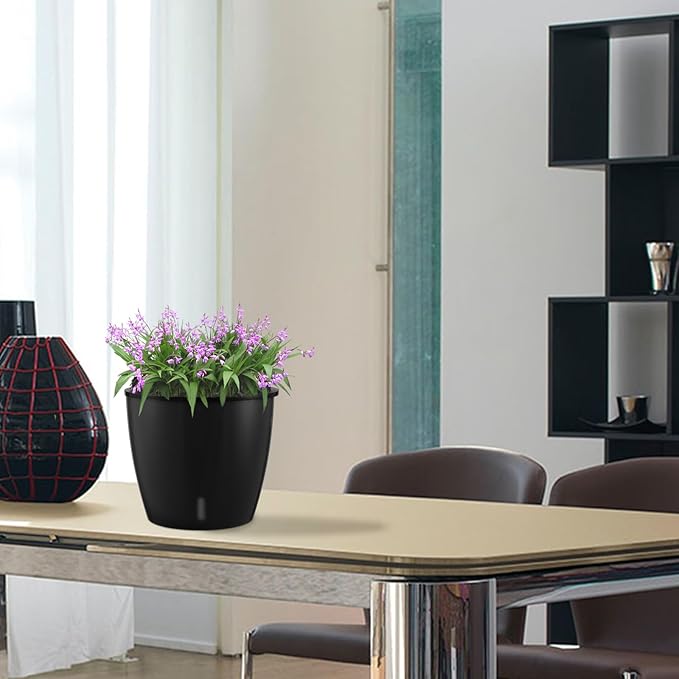 - Easy to Use: This self watering planter are designed with a double-layer system for convenience: Black Inner Pot and Outer Pot with water-level indicator. The wick inside the inner pot draws water from the reservoir to the roots, ensuring your plants get consistent hydration without the risk of soggy soil. It’s the ultimate hands-off solution for healthy plants!