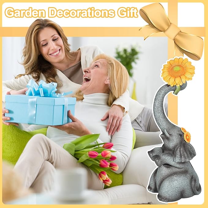 - ELEPHANT GIFT: Our original design elephant and sunflower garden statue is a versatile, thoughtful, and sentimental elephant gifts for women and men. The elephant is symbolic of strength, loyalty, and good luck, adding extra meaning to the gift. Perfect for birthdays, anniversaries, and housewarming parties.