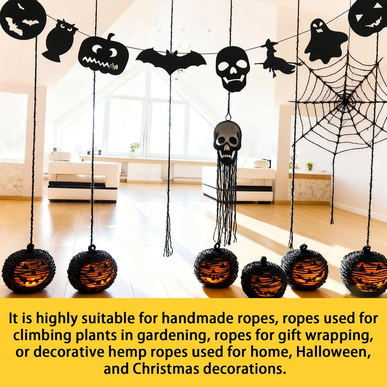 1mm 328 Feet Black Natural Jute Twine, for Crafts Gift, Craft Projects, Wrapping, Bundling, Packing, Holiday Packaging Twine, Gardening and More, Jute Rope to Use Around The House and Garden