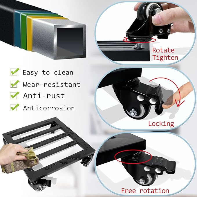 - 360° Rotatable and Lockable Design - The plant caddy with wheels is equipped with four wheels that can be rotated 360 degrees, two of which can be locked. It’s easy to carry heavy duty plant caddy and can be firmly fixed the entire wheel to prevent sliding.