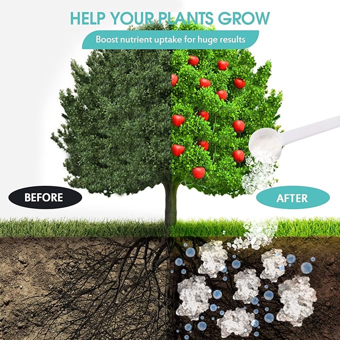 - AERATE SOIL - These water crystals keep plants hydrated and aerate soil. They expand and shrink as they absorb and release water, creating small gaps for better airflow and water penetration, which can improve soil structure and promote better root growth.