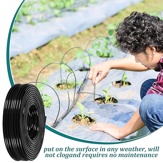 - Reliable Material: the drip irrigation hose is made of polyethylene resin material, soft and reliable, UV resistant, reusable, can withstand bad weather and high water pressure, cold and heat resistant, can be applied in any weather, drop it buried or placed in apparently, which will not affect plant growth and requires no maintenance