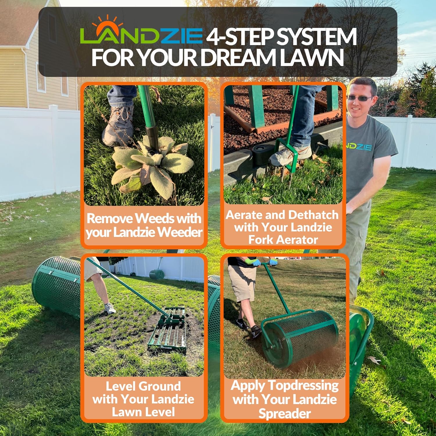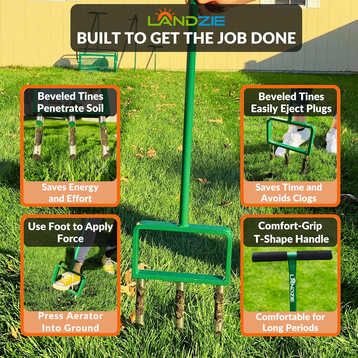- HEAVY-DUTY LAWN CARE PROFESSIONALS: Landzie USA understands your lawn care needs and constructs the best tools for the job. Our team of dedicated lawn care experts designs and manufactures only the strongest and most durable tools that will last for years. Landzie's Manual Lawn Aerators are no exception. Built with powder-coated, durable steel to withstand even the most demanding jobs, landscapers, professionals, and lawn car enthusiasts across the country trust Landzie garden aerator for lawns.