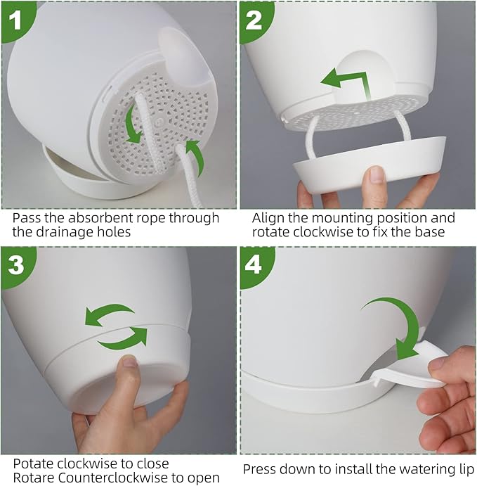 - [Drainage Holes] The flower pots feature a unique drainage hole design at the bottom, which effectively drains excess water and prevents plants from being overwatered. The soil is separated from the water level, and water is introduced through a cotton rope hole to keep the soil moist and healthy plant growth.