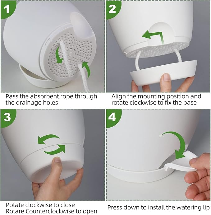 - [Self Watering Planters]: Keep your plants healthy and hydrated with Vanslogreen's self watering planters. Our pots for indoor plants are designed with a saucer that acts as a reservoir to store a large amount of water, separating it from the potting soil. When your plant needs water, the water is diverted from the reservoir to the soil through absorbent cotton ropes.
