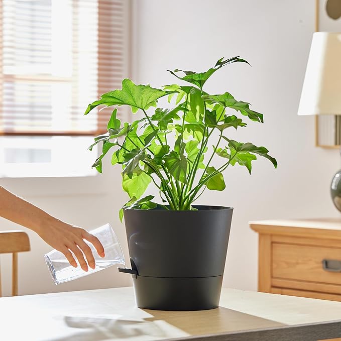 - 【Innovative Self Watering Design】- Our flower pots are equipped with detachable deep trays that can store a large amount of water, enough to supply plants with water for up to 14 days, keeping your plants well fed and hydrated. You don't have to worry about your plants drying up when you are away on a business trip or traveling.