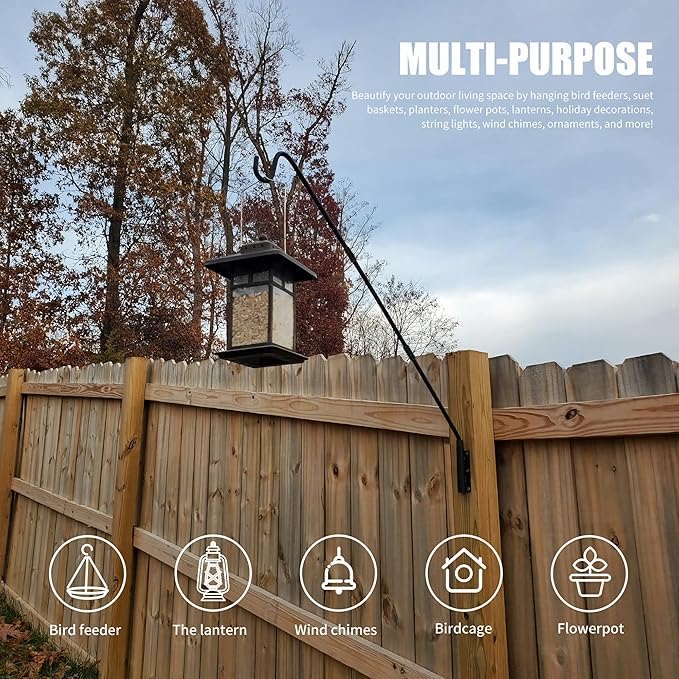- Widely Outdoor Use - Our shepherd hook for outdoor is sturdy and easy to handle. Designed for hanging a variety of bird feeders, suet baskets, lanterns, holiday decorations, string lights, planters, flower pots, wind chimes, ornament to decorative your outdoor living space