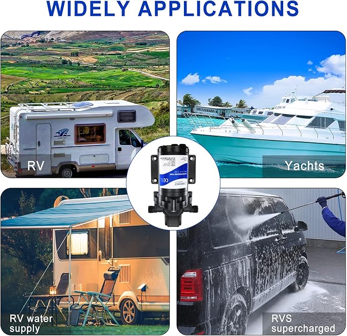- 530F water pump is the perfect electric, automatic booster pump for RV, marine vessels, and boats. It is self-priming and can transfer fresh water with a 12V DC power source. This makes it the ideal pump for your fresh water washdown requirements for your boat, marine water pump needs, and recreational vehicle demands.