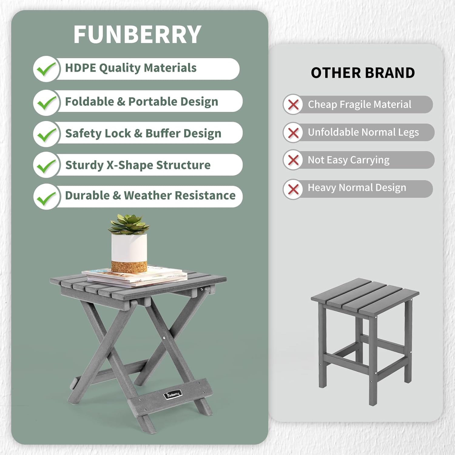 FUNBERRY Outdoor Folding Adirondack Side Table, Portable No Assembly Patio End Table HDPE All Weather
