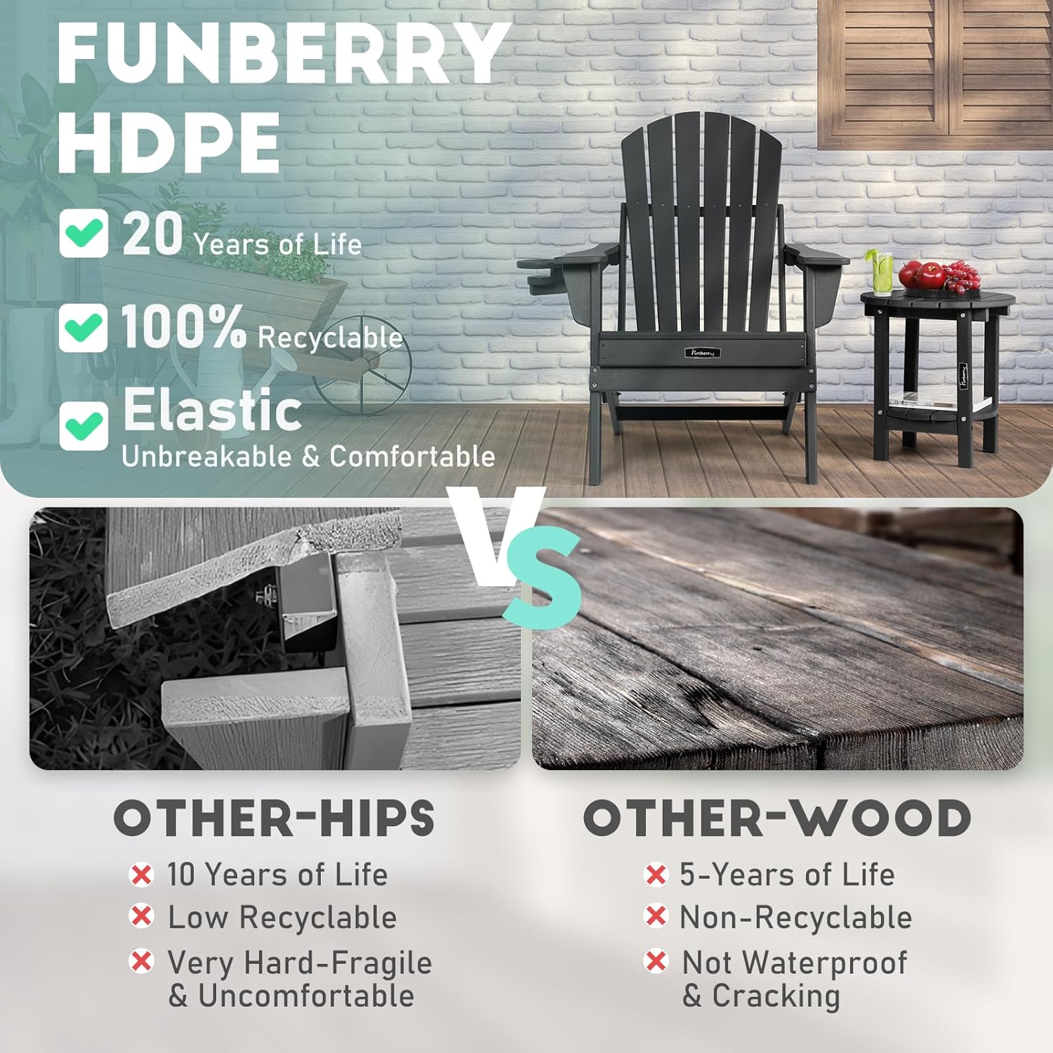 FUNBERRY Outdoor Adirondack Side Table, 2-Tier Patio End Tables, HDPE All Weather for Outside