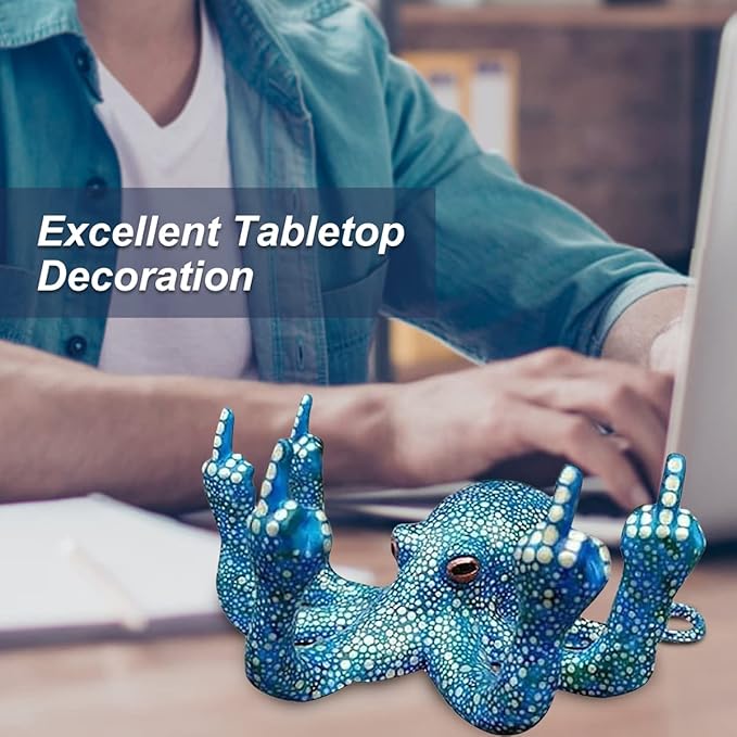 Middle Finger Octopus,Middle Finger Statue,Weird Decor Suitable for Indoor and Outdoor Garden Home Various Fish Tank Decoration (Blue)