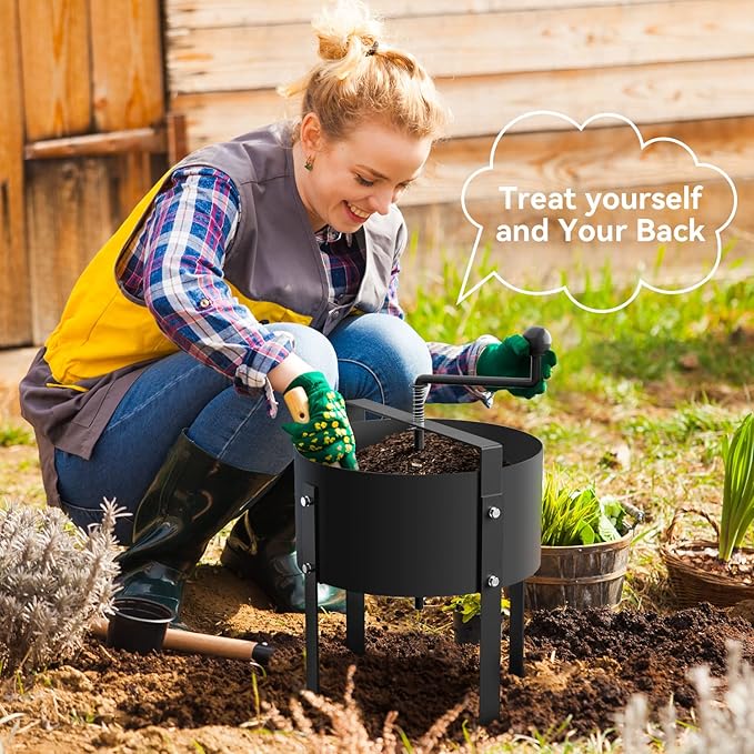 - Treat Yourself and Your Back: This product will save your arm and Backache from manually sifting dirt, compost, weeds, etc. 4 or 5 times quicker than hand sifting .you will get years of use due to sturdy metal construction and ease of use.
