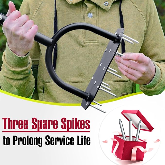 - 【Warm Tips】 - Before lawn care, it is more efficient to keep the soil moist by sprinkling water first or after rain. This lawn air aerator comes with 3 spare spikes. Get the hand lawn aerator with confidence, we are always available fix any problem for you