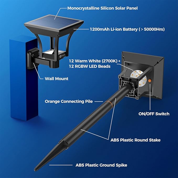 - 【2 Easy Installation Styles】No wiring or tools required. Simply stake these solar LED landscape pathway lighting into the ground or mount them on the walls in no time. No matter which installation method is used, the displayed pattern effect is sure to be amazing and attractive which can create a warm and cozy mood when you come back.