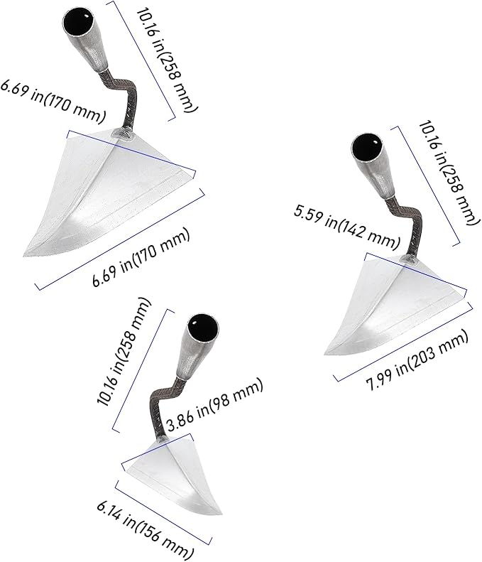 - 3 PIECES-SET - The set includes 3 triangular hoes with pointed tips from small to large(6.1”/6.7”/7.9”). You can fit it to the size of the trench you need. The quantity is sufficient to meet your daily use and replacement needs.