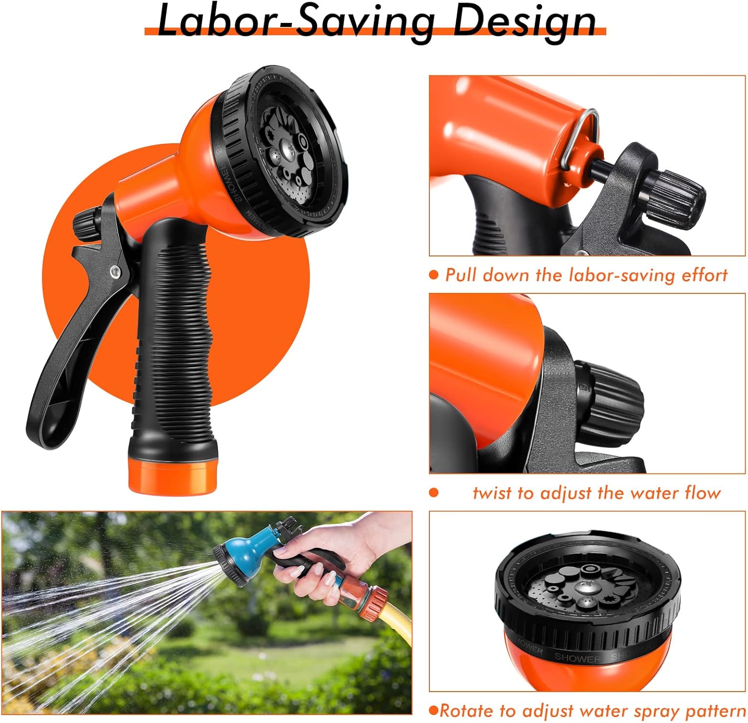 8 Pcs Garden Hose Nozzle Sprayer 10 Adjustable Watering Patterns Heavy Duty High Pressure Water Gun for Watering Plants Washing Cars and Showering Pets