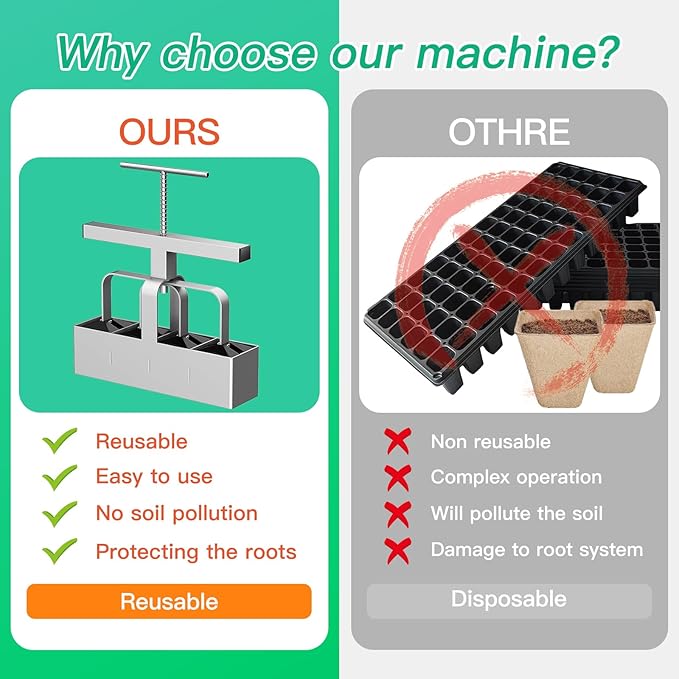 - 【Durable Material】 The soil block machine is made of stainless steel, strong and durable, rust-proof, not easily deformed and broken, durable and well constructed for repeated use over time.
