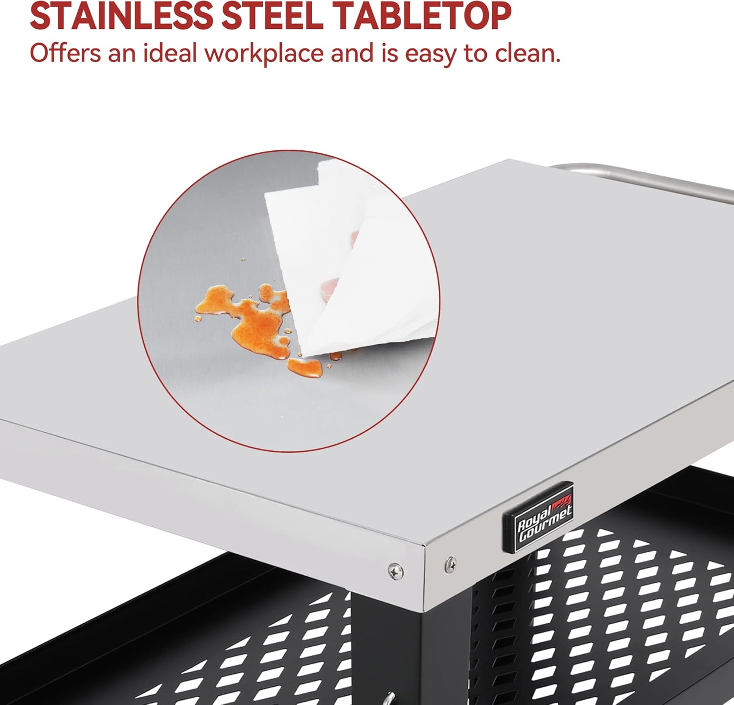 Royal Gourmet PC3404S Rolling Dining Table with Trash Bag Holder, Outdoor Garden Patio BBQ Kitchen Food Prep Table Cart, 34"L x 20"W Stainless Steel Tabletop, Silver & Black