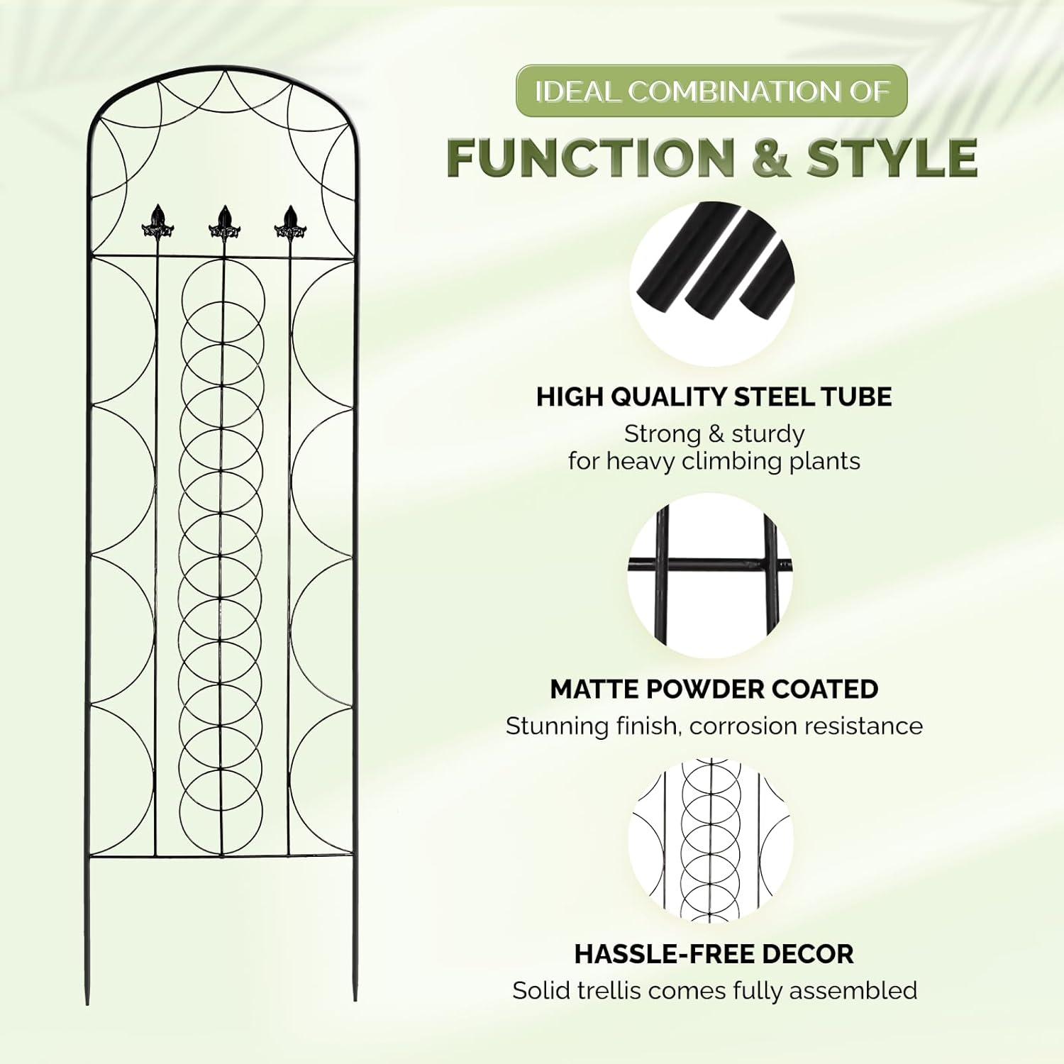 - π BUILT FOR LONG LASTING BEAUTY: The high quality steel trellis for climbing plants with outstanding strength and durability provides solid support for climbing plants; Its powder coating protects it from rust and corrosion, ideal for outdoor use