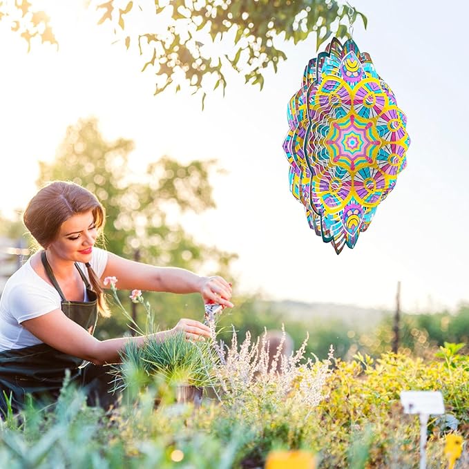 - ★【Unique gift ideas】This indoor and outdoor Wind spinner can not only be used as decorations on indoor walls、window and chandeliers, but you can also put them on outdoor trees,balconies, pools,courtyards,and gardens as part of gardening decoration.It can also be given to your family and friends as an unique gift ideas on birthdays,Christmas and other festivals.