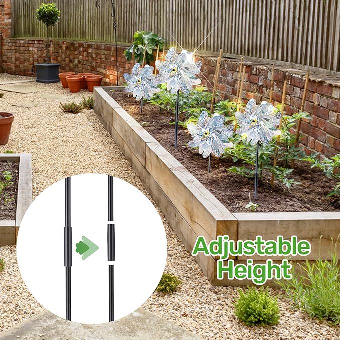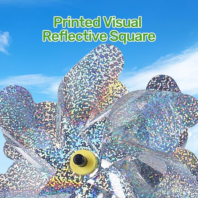 - Size & Adjustable Height : The reflective pinwheel dimension is 7” H*3.9” W, 10 packs per set. The total height of the 2 stakes is 15.7 inches. But it contacts with 2 sections so you could adjust the height as needed