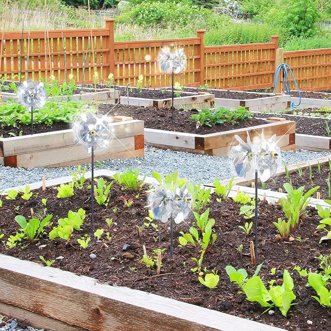 - How it works : There are millions of reflective lasers on the silver pinwheels, and it can decorate your garden