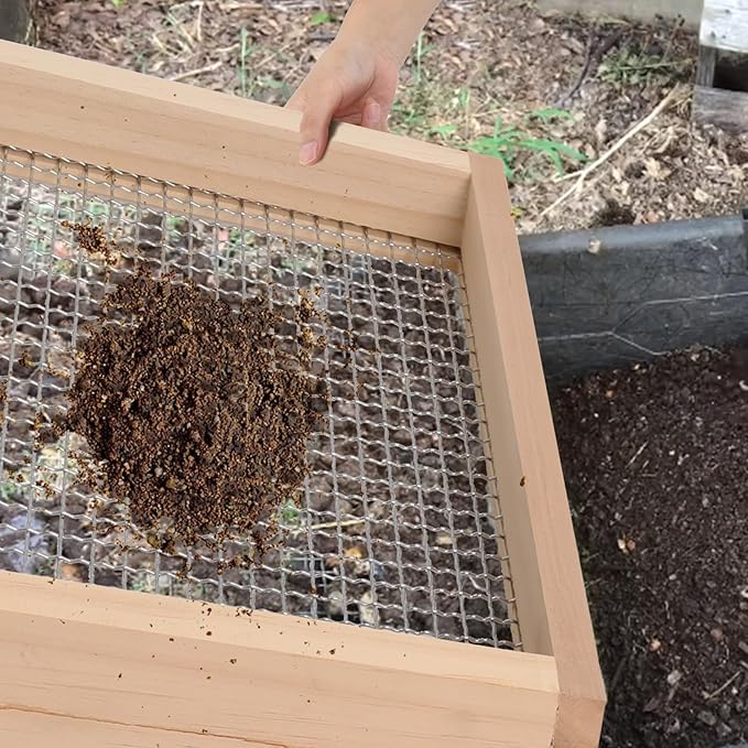 - 【Outstanding Rust Resistance 】Soil sifter for gardens with body surrounded by high quality wood. The hardware is made of heavy-duty galvanized steel wire and is provided with a double coating to maximize rust resistance and longevity.