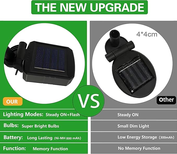 - 【Energy Saving and Easy to Install】: Solar firefly light is equipped with high-efficiency monocrystalline silicon solar panels, built-in 1.2V, 800mAh Ni-MH battery, ensuring your The solar outdoor lights are fast charging, it can be fully charged in 2-4 hours under direct sunlight, and can be continuously lit for 18-20 hours (continuously lit all night). No annoying wires to install, and you'll be doing all the quick installation steps in 10 seconds, lighting up your yard all night long!