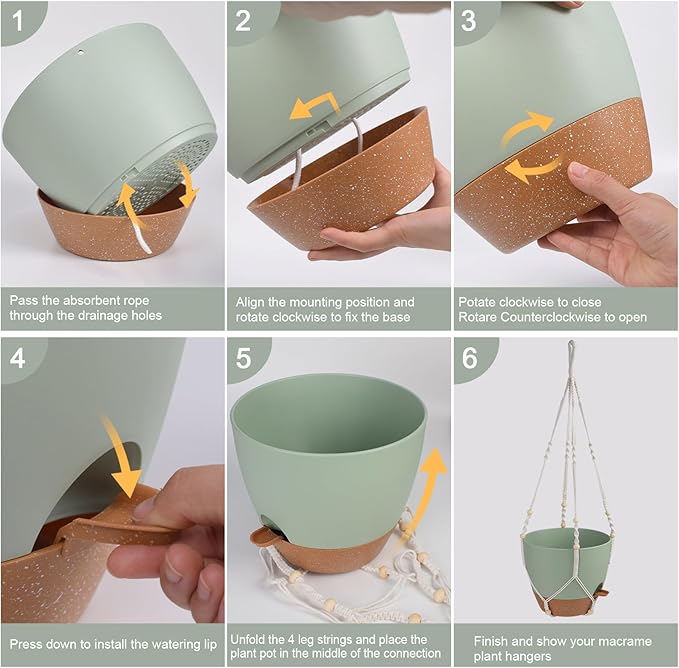 • Self Watering Pots - The self watering hanging planter features multiple drainage holes to help you avoid over-watering and release excess water. Separate the potting soil from the water surface, enter the water through cotton rope perforations to keep the soil moist and plants healthy growth.