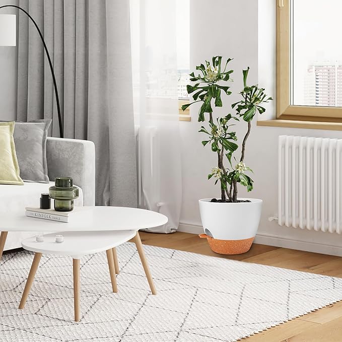 • 【Modern Simple Design】Pure white plant pot with brown bottom and matte finishing exterior, bringing out a modern minimalistic styled. the round planter pots are perfect for all small to medium-sized indoor house plants and herb spice gardens. Works well with orchid, cactus, succulents, aloe vera, basil, flowers, Peace Lily,air plants, snake plant.