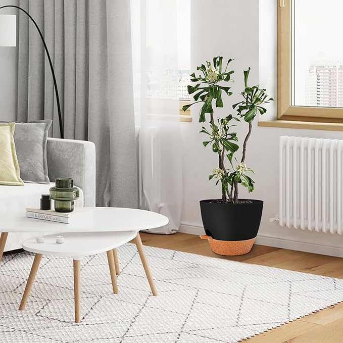 GARDIFE 10 inch Plant Pots,Self Watering Pots, 2 Pack Flower pots, Large Plastic Planters with Deep Reservior and High Drainage Holes for Indoor Outdoor Plants and Flowers, Black