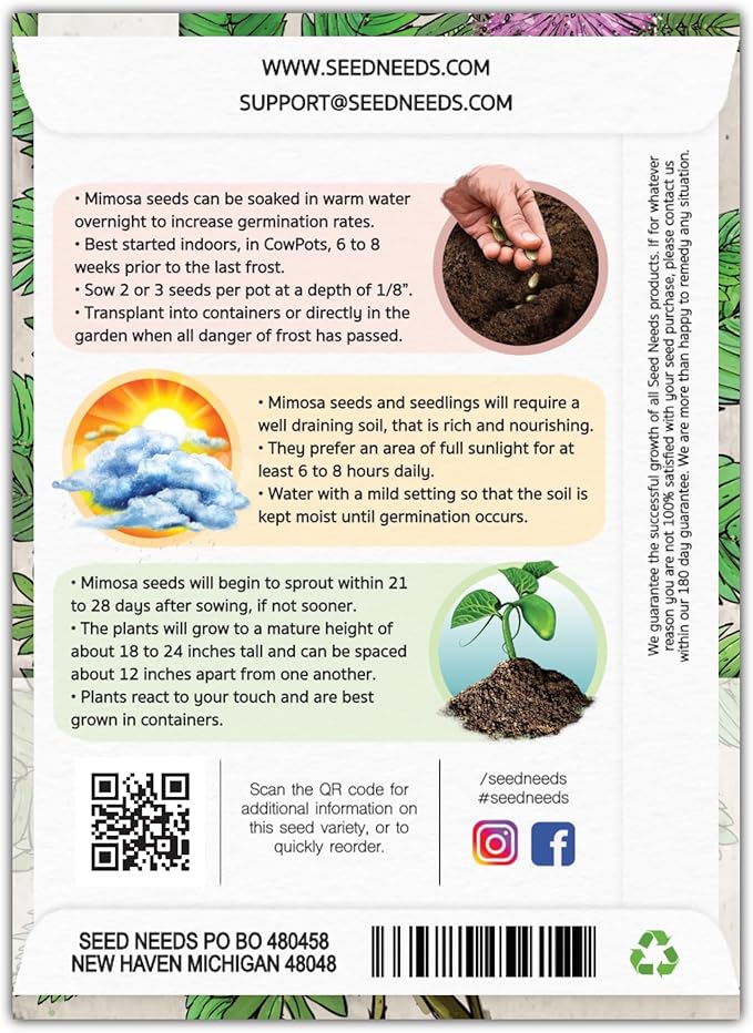 - Freshness - All Mimosa pudica seeds are packaged in tear resistant and moisture resistant packaging. This keeps the seeds a whole lot fresher than the competitions selection!
