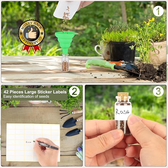 - [Easy to Differentiate Seeds]: The design of seed storage box features 42 label stickers and sponge slot, ensuring that all seeds are neatly organized.With this transparent seed saving small jars and labels, you can easily see the seeds inside, making it convenient to search for and identify various types of seeds, bidding farewell to any seed-related mess.