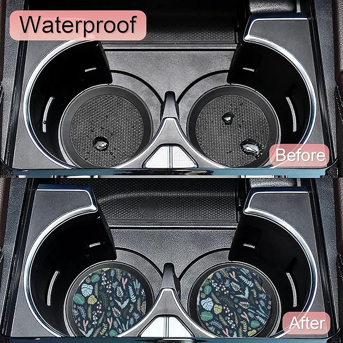 - Material:Cork coaster protects your car from spills and stains, absorbs any moisture or liquid that may spill from the cup, keeps your car cup holder dry and clean.