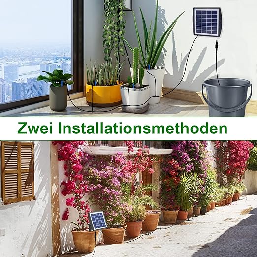 - 【Automatic Solar Watering System】A efficient solution for plant care. With its solar panels, it can store electricity and automatically water your plants according to your preferred schedule and output. You can easily set it up by plugging the wiring kit and hose into a prepared bucket, and it can be used both indoors and outdoors, perfect for those who are always on-the-go. This system is ideal for individuals who want to maintain the health and hydration of their plants with minimal effort.