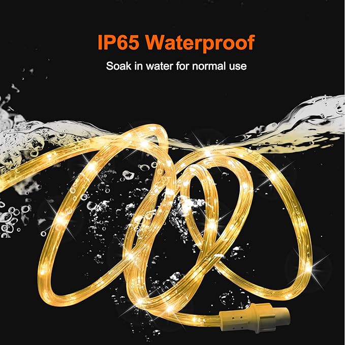 - 【Waterproof Thick Rope Lights】 More Durable - IP68 waterproof clear tubing protects the copper wire string lights. Perfect for outdoor and indoor decorations.