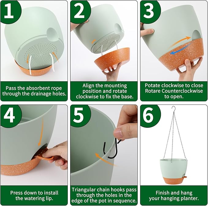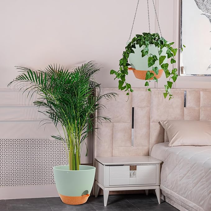 GARDIFE Large Hanging Planter, 12 inch Hanging planters for Indoor. Outdoor Plants, Self Watering Plant Pot, Plant Hanger, Green