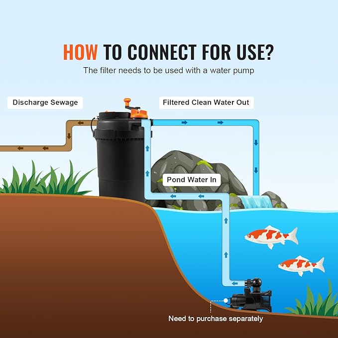 - Fast Purification in 3-7 Days: Our bio pressure pond filter works at a stellar flow-through rate of 1840 GPH (7000 L/H), ideally purifying decorative ponds up to 2000 gallons and fish ponds up to 1000 gallons. Remember, for optimal performance, simply connect to a pump!