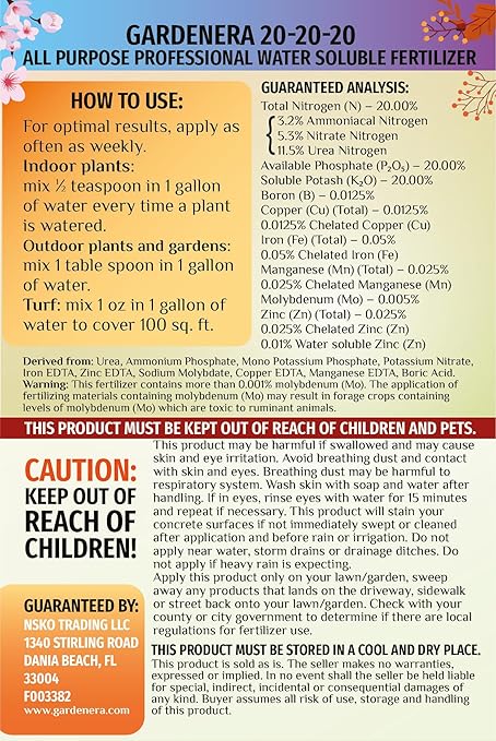 - 🌱 Boosted Growth and Thriving Plants: Gardenera 20-20-20 All-Purpose Fertilizer 🌿 provides a powerful boost to plant growth, resulting in healthier and more vibrant plants that flourish in any environment.