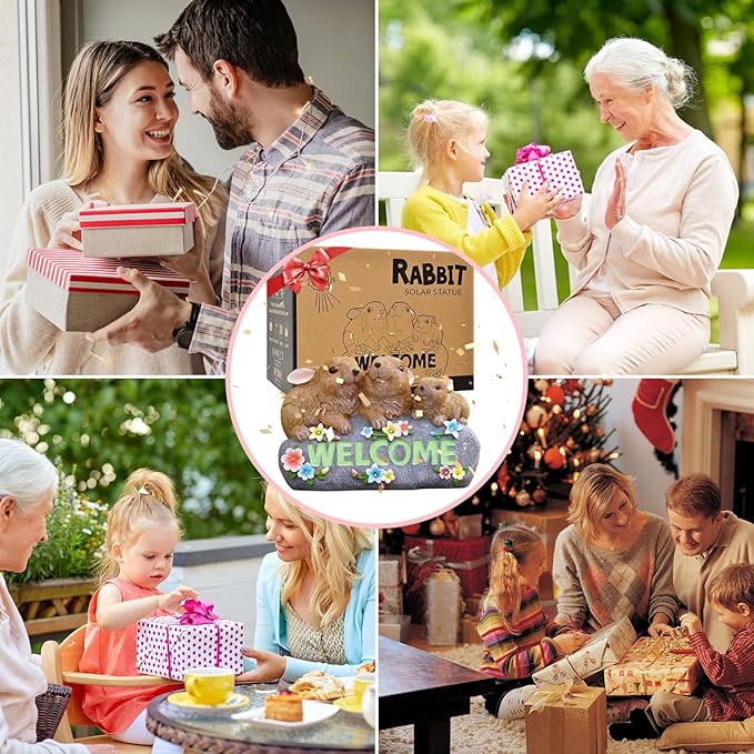 - 【Perfect Gifts for Women, Moms & Garden Enthusiasts】: Surprise your loved ones who enjoy gardening or appreciate unique decor with this exquisite rabbit family solar statue, making it an ideal gift for birthdays, Mother's Day, or housewarmings