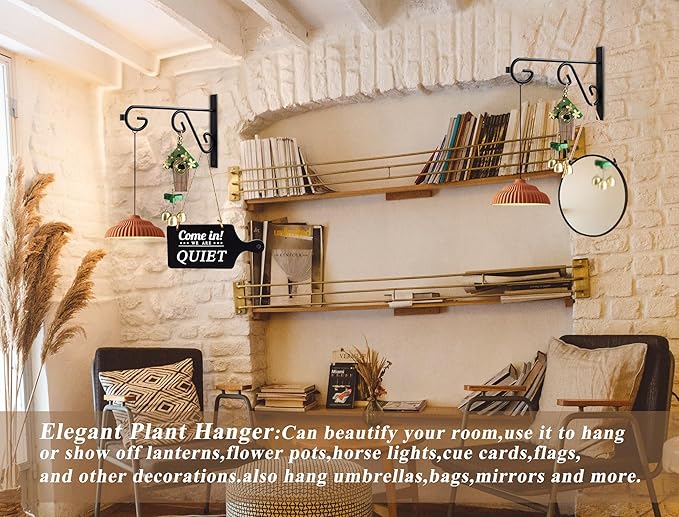 - Easy To Install:Each plant hook measures 9" X 5.8",set of 4.Suitable for both outdoor and indoor use,equipped with along with self-tapping screws and expansion screws,easily bite into wood or walls,making it more convenient and quick to use.