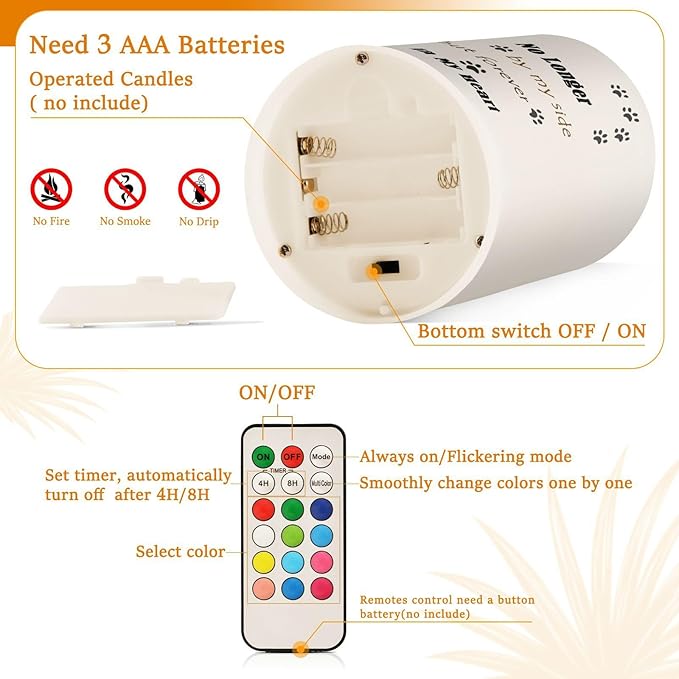 Vdsrup Flameless Candles Set of 2 Memorial Pet LED Candles with Timer Battery Operated Customize Candle Lights Flickering with Remote for Home Bedroom Decor