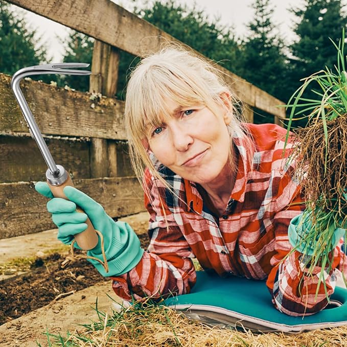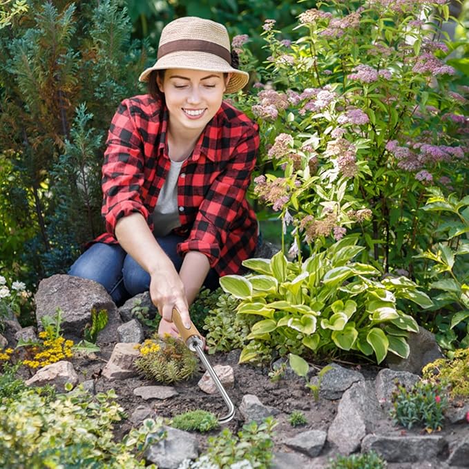 - 🔥Long Service Life: The Weeder for Vegetable Yard Lawn and Farm is made of iron material with wooden handle, safe and practical, and has a long service life. Versatile Tool That Functions as a Cultivator, Hand Tiller, Weeder, & Edging Tool - Lightweight & Durable to Use