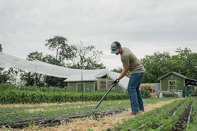 Hooyman 4-Tine Cultivator with Heavy Duty Carbon Steel Construction, No-Slip H-Grip Handles for Gardening, Land Management, Yardwork, Farming, and Outdoors