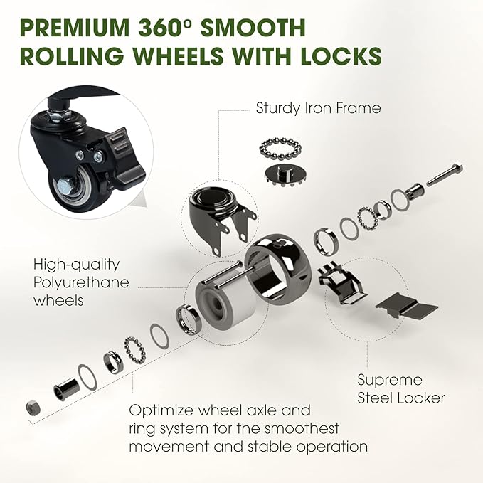 - 366° SMOOTH ROLLING WHEELS: Polyurethane caddy wheels rotate smoothly on various surfaces; Lockable to prevent movement, great for plants