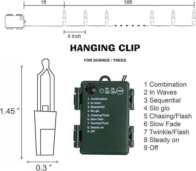 - 8 Lighting Modes: Dazzle Bright mini string lights has 8 different lighting methods, including combination, in wave, sequential, slo glo, chasing/flash, slow fade, twinkle/flash, steady on. Press the button on the battery box to select the lighting mode you like.