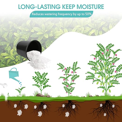 - LONG-LASTING WATER LOCK - If you’re looking for a great way to keep your plants hydrated and healthy, these water crystals are the perfect solution. Don't let your plants suffer from dehydration or overwatering anymore, these water storage crystals will keep your greens in top shape.