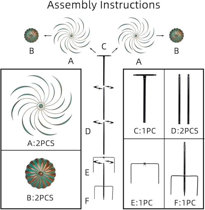 - Wind Spinners Outdoor Decor: Metal wind spinner adds a touch of vitality to your outdoor decor. It spins with the breeze, shining in the sunlight. Perfect for pathway, patio, lawn and garden decor