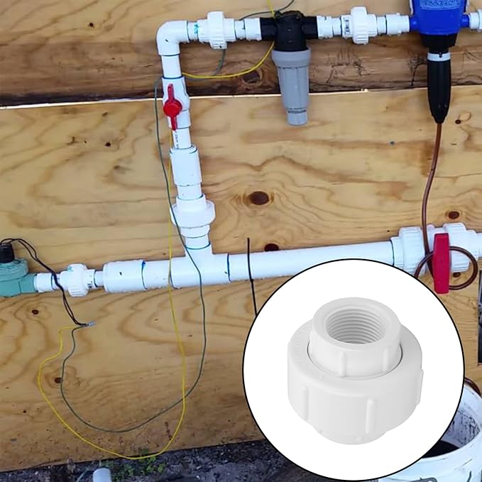 - 【Material】Heavy Duty 3/4 Inch PVC female union made of high-quality PVC, high-impact strength, resistant to frost and corrosion, long service life.