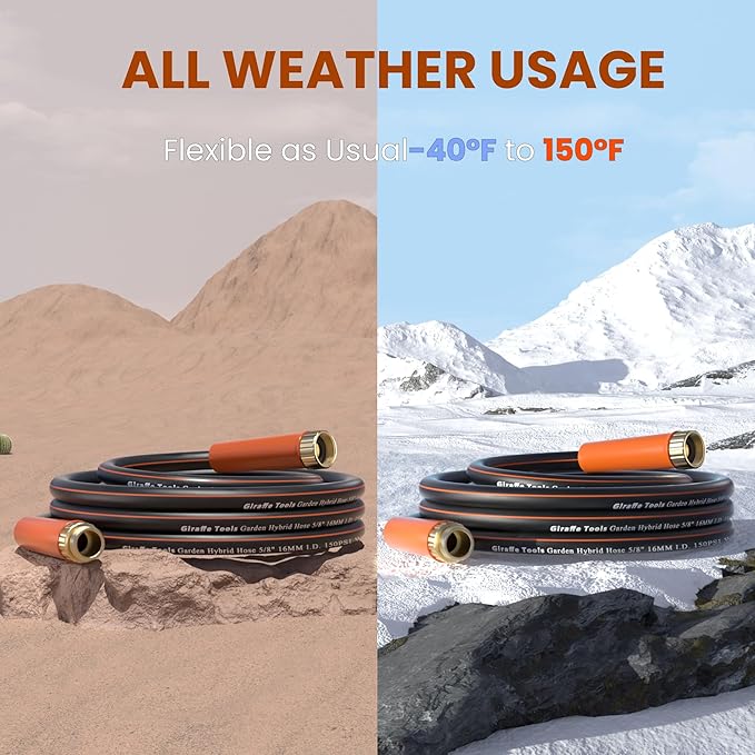 - All-weather Flexible - The rubber component allows the hose to remain flexible in extreme temperatures, defying heat or cold, still easy to coil and uncoil.